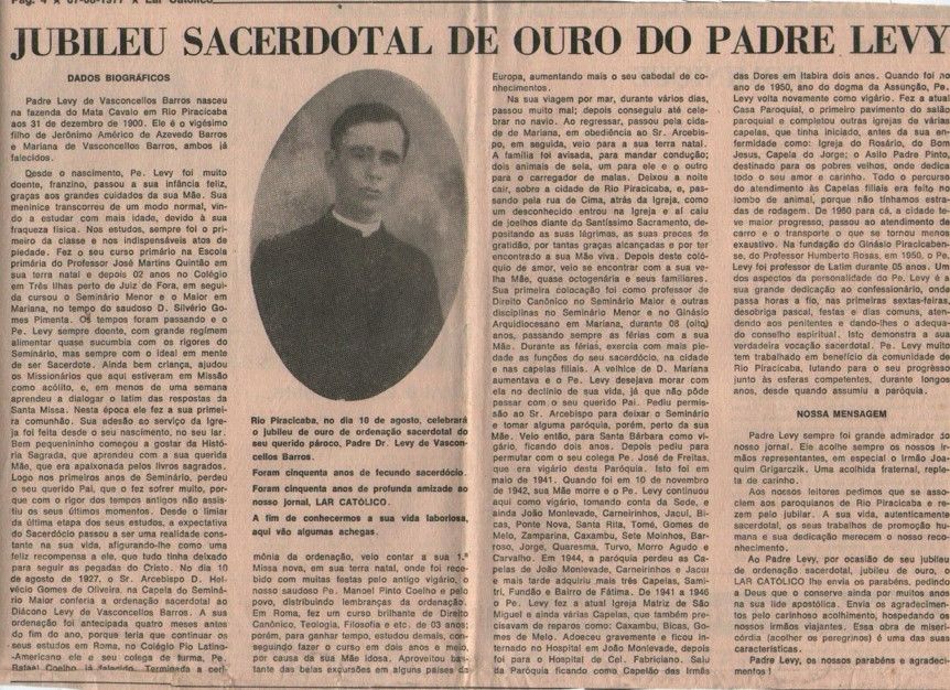 MATÉRIA JORNALÍSTICA EM COMEMORAÇÃO AO JUBILEU DO PADRE LEVY VASCONCELOS BARROS